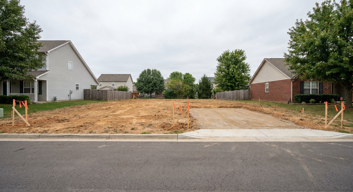 Upload the raw lot with survey stakes. AI renders the finished home — matching your proposed style, siding colors, roof pitch, landscaping, and driveway — on that exact parcel. Buyers stop imagining and start committing.